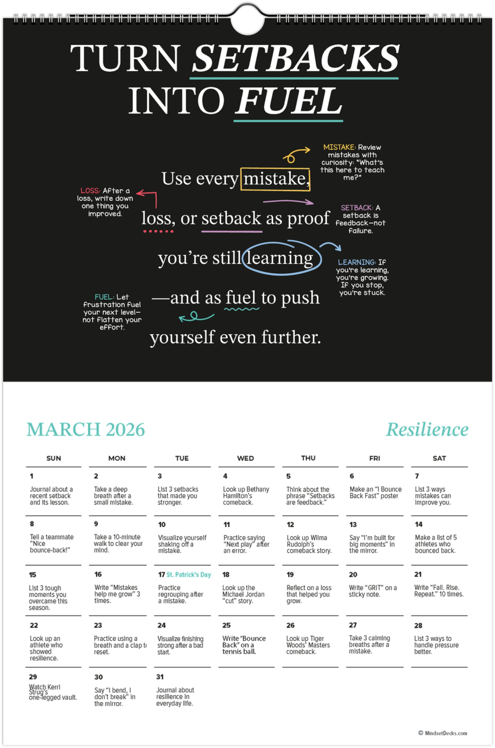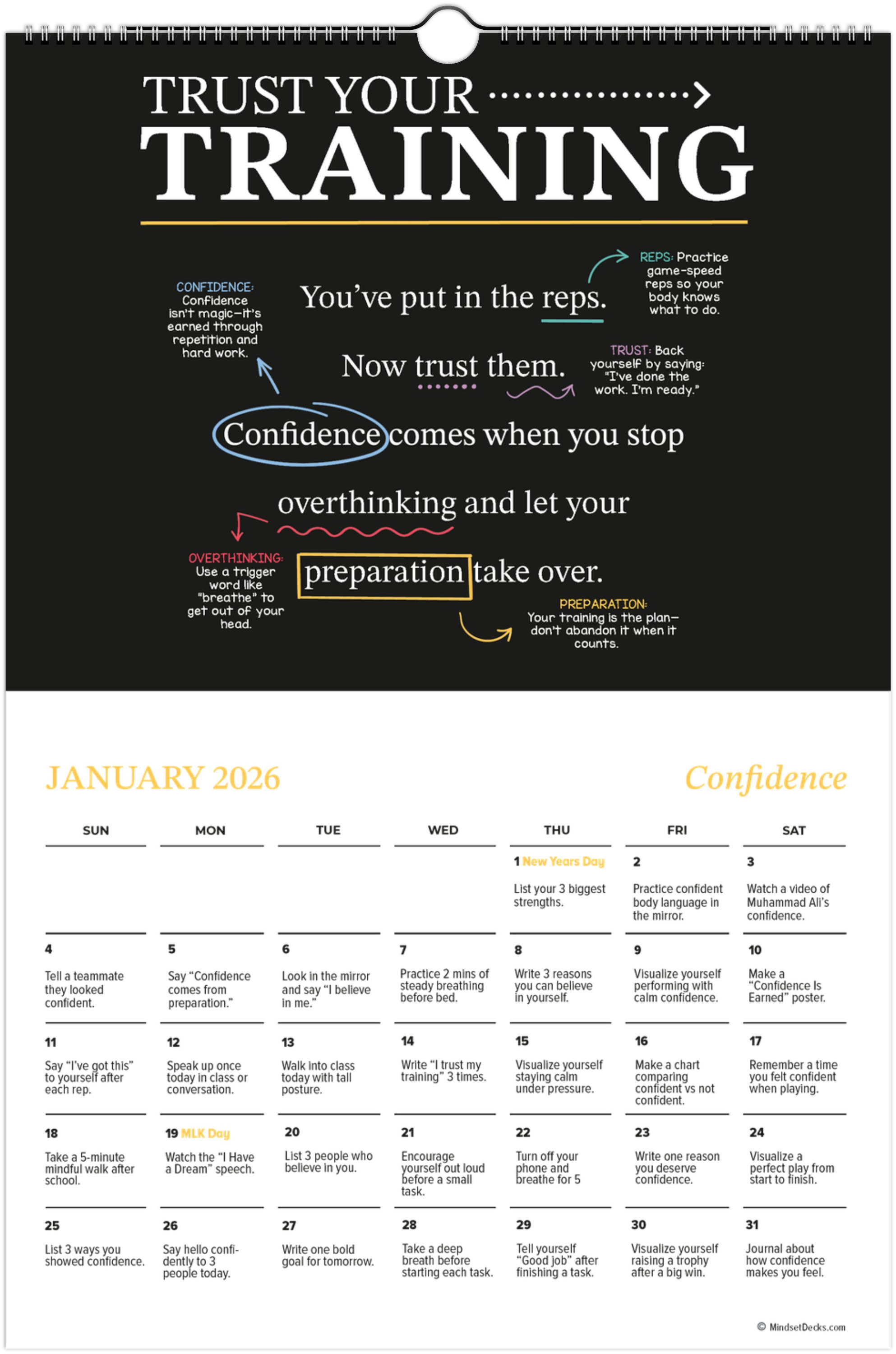 Each month is focused on a specific mindset skill for athletes of all ages.