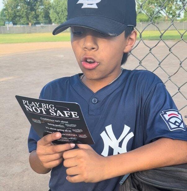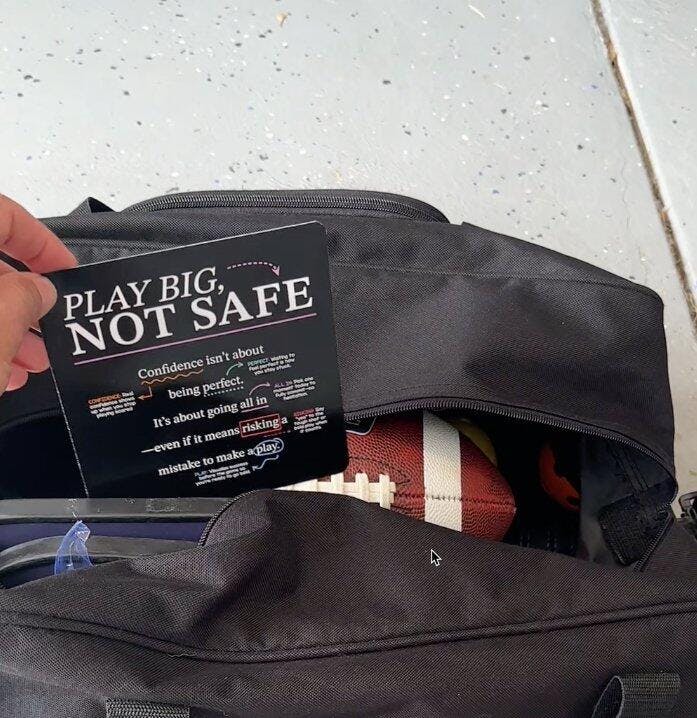 These give us a way to talk about mindset and confidence without it feeling like a lecture. I pick one card and we talk about it on the way to practice, at breakfast or sometimes after game.